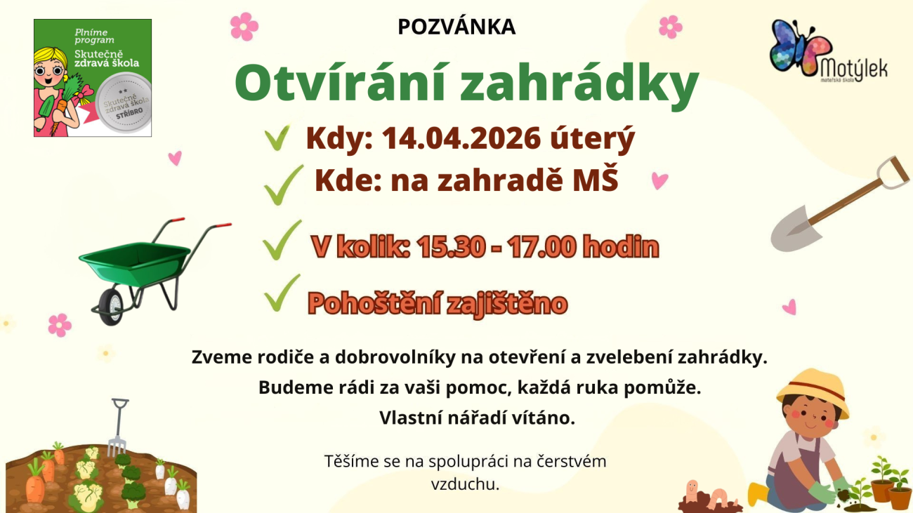 Otvírání zahrádky s rodiči 14.4.2026 od 15:30 hod.
